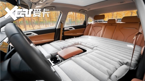 只要把前排驾驶座椅取下头枕,这时候这座椅就可以180度放平和后排衔接,秒变“单人床”,午休能拥有一个私密的空间,躺平午睡简直是打工人的梦想。当然,这只是小鹏的“单人模式”。如果是主副驾同时放倒,小鹏P5定制版床垫快速充气铺平,车厢变卧室。还能自动的打开香氛,开启遮光帘,自动的播放轻音乐,为用户营造出一个舒适的睡眠空间。