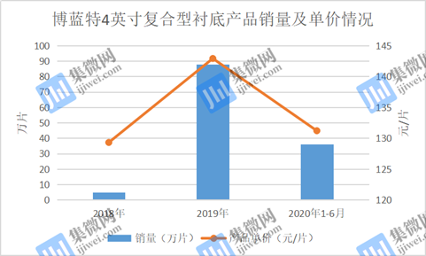 2018年至2020年上半年,博蓝特4英寸复合型衬底的销量分别为5万片、88万片、36.06万元,产品单价分别为129.31元/片、142.91元/片、131.21元/片。