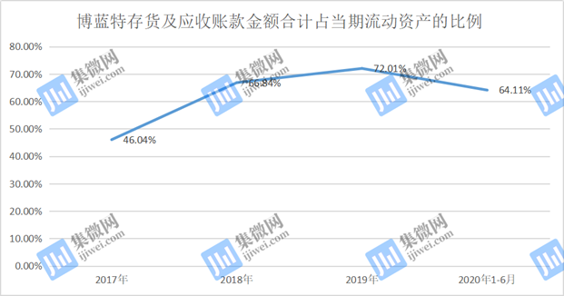 值得提及的是,报告期内,博蓝特的流动资产分别为38,755.48万元、46,800.71万元、50,563.39万元、57,906.10万元,而存货及应收账款金额合计占当期流动资产总额的46.04%、66.84%、72.01%、64.11%,占比较高。