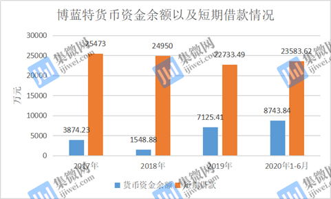 报告期内,博蓝特的货币资金余额分别为3874.23万元、1548.88万元、7125.41万元、8743.84万元,短期借款分别为25473万元、24950万元、22733.49万元、23583.62万元。这意味着,博蓝特的货币资金余额始终远远不够支付其短期借款。尚若博蓝特短期借款到期,且其除货币资金之外的其他流动资产变现不及时,则可能会对其经营业绩产生一定的影响。